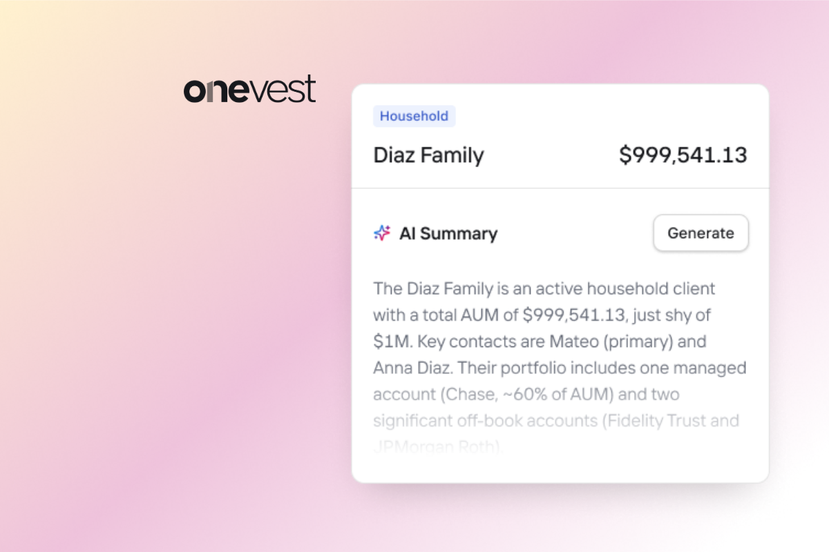 Over the past year, OneVest partnered closely with our customers, RIAs and enterprise wealth organizations to understand the day-to-day challenges that slow advisory teams down. What firms asked for wasn’t more features; it was better foundations. Wealth managers wanted cleaner data, more flexible account structures, smarter automation, and infrastructure that scales as the business grows. The product advancements introduced throughout 2025 were shaped directly by those needs. Below are the four themes we heard most consistently from customers, and the investments we made in response. 1. “Our teams need to spend less time managing tasks and more time serving clients.” Advisors want to focus on relationship-building and strategic work, not administrative tasks. Firms requested tools that help teams stay on top of priorities without increasing operational overhead. That’s why we created: AI-Driven Next Best Actions The Next Best Action feature surfaces timely reminders, follow-up opportunities, and high-priority tasks based on activity patterns and book-of-business dynamics. It helps advisors allocate attention where it has the most impact, supporting deeper client engagement and more productive days. A No-Code Workflow Builder That Adapts to Each Firm Every firm operates differently, and workflows must reflect unique service models and regulatory requirements. OneVest’s improved dynamic workflow builder allows operations teams to design, deploy, and iterate on onboarding, compliance, and service workflows, all without engineering support. This provides firms with the flexibility to adapt processes as the business evolves. Role-Based Notifications for Home Office Control OneVest’s new and improved notification system delivers greater flexibility and oversight for home offices by allowing different types of notifications to be configured, controlled, and delivered based on role. The platform now supports a wide range of real-time, in-app alerts across the advisor portal and client web app, ensuring that each update reaches the right audience with the right context.Admins benefit from enhanced control over compliance-related and operational notifications. Advisors receive timely workflow and client updates that streamline communication and improve service responsiveness. Clients experience a more transparent, professional journey through proactive alerts that reinforce trust and reduce friction throughout their financial interactions. 2. “Our client relationships are more complex than traditional householding.” Modern clients increasingly manage multiple entities, trusts, investment goals, and region-specific accounts. Firms needed more flexibility to reflect these complexities in their systems. So we brought: Smarter Account Structures with Account Groups Account Groups allow firms to organize and manage accounts by trust, entity, investment objective, or any structure that mirrors a client’s real financial life, far beyond traditional householding. This makes planning and oversight easier for multi-entity or multi-goal relationships. Account-Level Role-Based Access To match more complex structures, firms also requested more granular access controls. OneVest introduced account-level permissions to define who can view and manage specific accounts, including support for POA and custom roles across multi-advisor or multi-region teams. This strengthens compliance while enabling more precise delegation. 3. “We need systems that scale without adding operational burden.” As firms expand into new regions, add advisors, or integrate new custodians and tools, they require technology that supports complexity without slowing down their teams. That means: Configurable, Branded Reporting OneVest introduced fully configurable, no-code reporting tools that enable firms to select key data points, customize layouts, and apply their own firm branding. Reports more easily support regulatory, operational, and client-facing needs without engineering assistance or manual workarounds. A Stronger, More Connected Infrastructure Behind the scenes, OneVest enhanced platform connectivity across custodians, CRMs, portfolio systems, and compliance tools. These upgrades create a unified operational view, reduce manual processes, and support faster onboarding, ensuring the platform scales alongside each firm. 4. “We need a clearer understanding of our clients and advisors.” Firms emphasized the importance of seeing how advisors and clients interact with technology. Better visibility helps improve onboarding, refine training, and strengthen digital experiences across the organization. So we introduced: Behavior Analytics with Mixpanel OneVest integrated Mixpanel to give firms deep behavioral intelligence across advisor and client journeys. This includes insight into: Onboarding drop-off pointsWorkflow adoption trendsEngagement patterns across regions, teams, or firm structuresClient adoption of our user-centric experiences, like the mobile app, helping firms identify what is gaining traction and where additional enablement is needed This investment ensures our technology evolves based on real user behavior, enabling continuous refinement and a smarter, more responsive platform over time A Real-Life View of Total Net Worth Clients and advisors expect a comprehensive view of wealth contained in one place. OneVest’s Net Worth experience brings together liabilities, held-away accounts, real estate, private investments, and other assets in a clean, real-time interface. Plaid integration enables clients to securely connect external accounts, while additional assets can be added manually to ensure that every aspect of a client’s financial picture is captured. This unified view supports more complete planning conversations and reduces reliance on fragmented tools. Built Through Customer Collaboration Every enhancement released in 2025 reflects direct input from the firms using OneVest’s technology ev